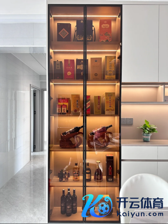 提议环球,作念酒柜就用高透的玻璃柜门,搭配上灯带不仅显得相当上档次,而且还能减少灰尘堆积,便捷打扫。