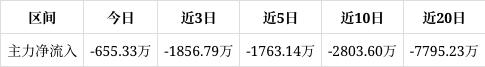 本日主力净流入-655.33万,占比0.1%,行业名次35/45,连结3日被主力资金减仓;所属行业主力净流入-1.77亿,连结3日被主力资金减仓。
