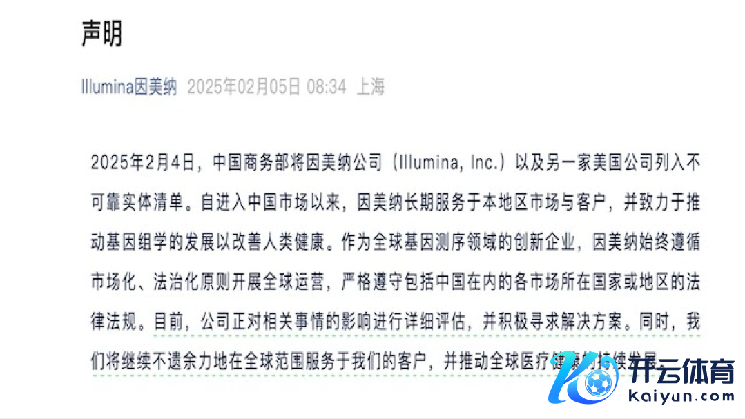 因好意思纳被中国商务部列入不行靠实体清单,公司称正在寻求搞定决策因好意思纳发布声明称,公司正对研究事情的影响进行详备评估,并积极寻求搞定决策。