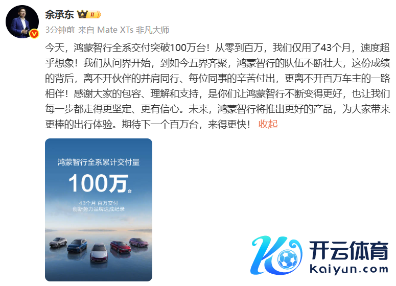 余承东:鸿蒙智行全系拜托毁坏100万台余承东:鸿蒙智行全系拜托毁坏100万台