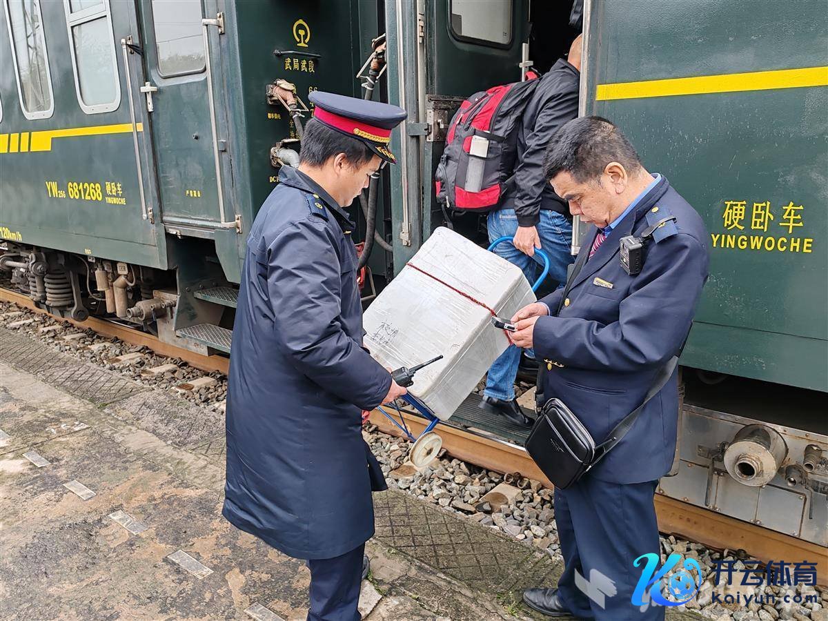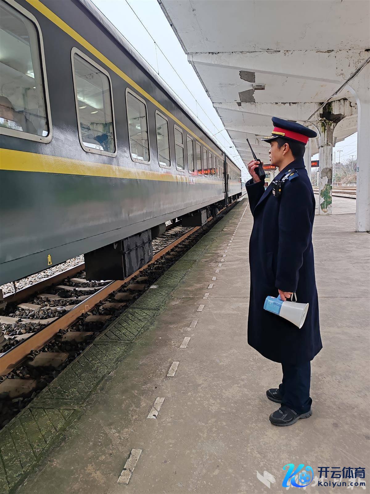 一列火车驶入枝城站,客运员王雄心在站台接车。