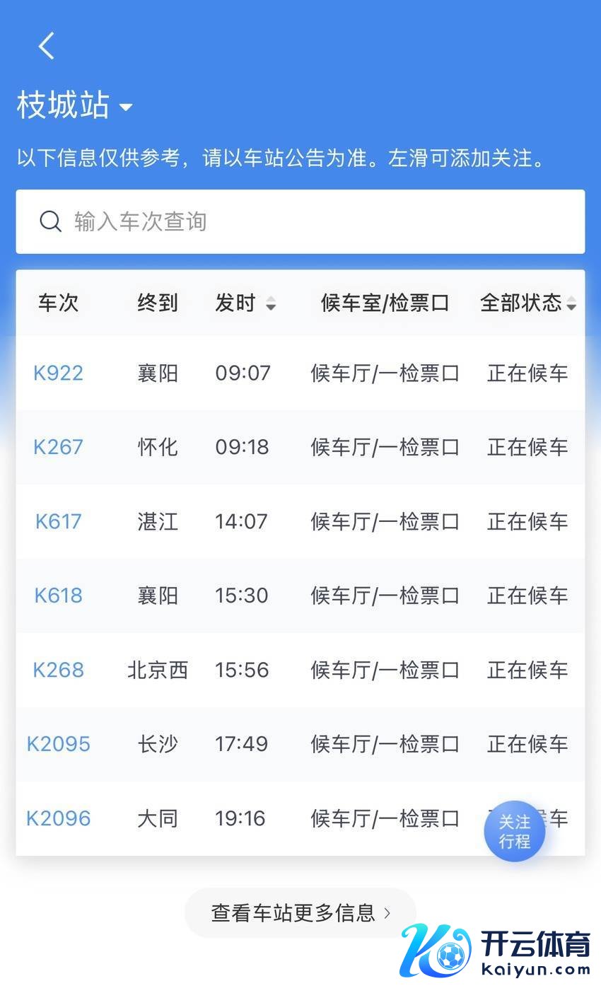 2022年,车站启动升级更动后,枝城站客运列车开动迟缓复原。到2025年底,停泊客运列车总和达7趟,可直达北京、大同、湛江、长沙、怀化、襄阳等地。