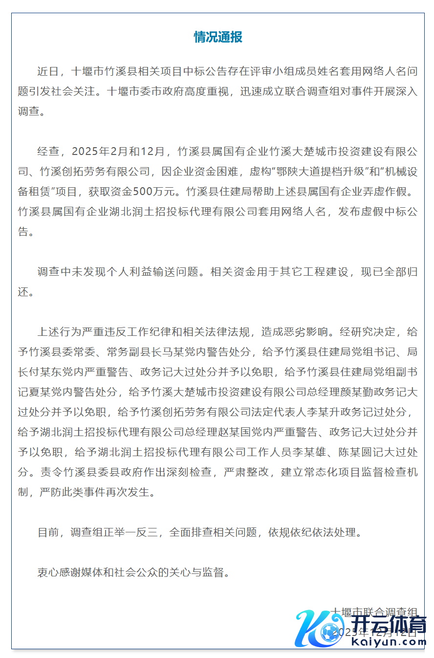 湖北十堰通报“最忙五东说念主组”事件:多东说念主被贬责并免职开云(中国)kaiyun网页版登录入口湖北十堰通报“最忙五东说念主组”事件:多东说念主被贬责并免职