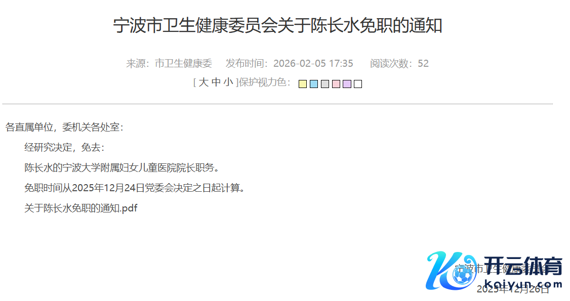 宁波卫健委:免去陈长水宁波大学附属妇犬子童病院院长职务宁波卫健委:免去陈长水宁波大学附属妇犬子童病院院长职务