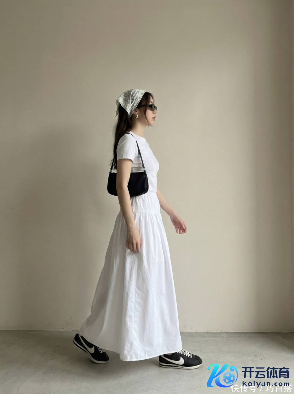 但大家无谓惦念的是白色T恤凭借它出色的百搭能力还能找到其他与之般配的单品,纯白色及踝半裙等于其中之一。