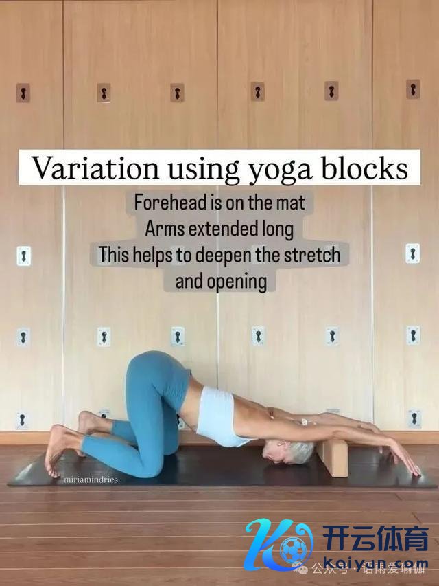 使用瑜伽砖进行的纯熟变化形式——额头贴在垫子上。双臂伸得长长的,这么有助于进一步增多拉伸阻挡。