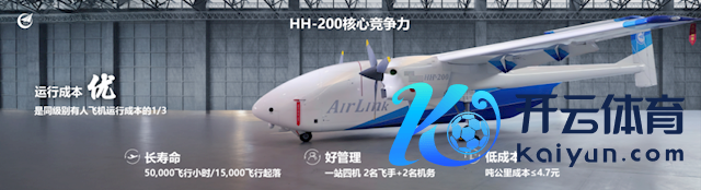 HH-200按民航法式盘算,飞机可全程智能自主翱游,AI智能避障,寿命达5万翱游小时、1.5万翱游起落,全寿命周期运营资本4.7元/吨公里。